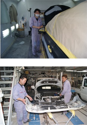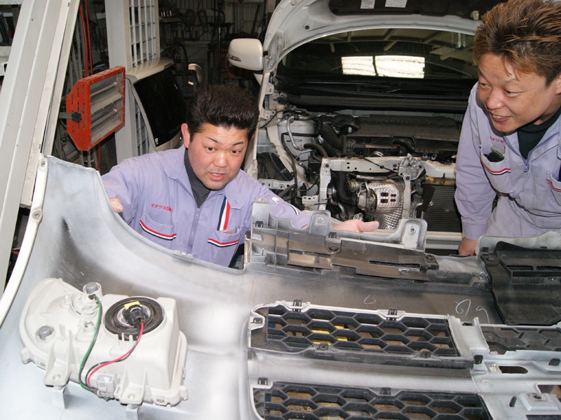 鈑金塗装の専門職人がいないお店では、再利用できそうな部品でもほとんど全て交換してしまい、部品代と取替え工賃で利益を出しています。でも私ども専門店では、できる限り修理し再利用することで、お客様の身になってできるだけコストを抑えられるような修理のしかたの技術をマスターしております。