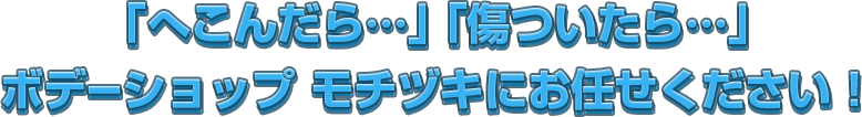 これまで長い間、この鈑金修理という分野で続いていた不透明な部分を、明快にお客様に説明し、納得していただいた上で、作業を承ることが、ボデーショップモチヅキの最も大切な使命と捉えております。