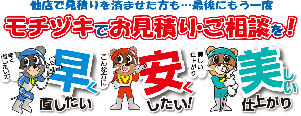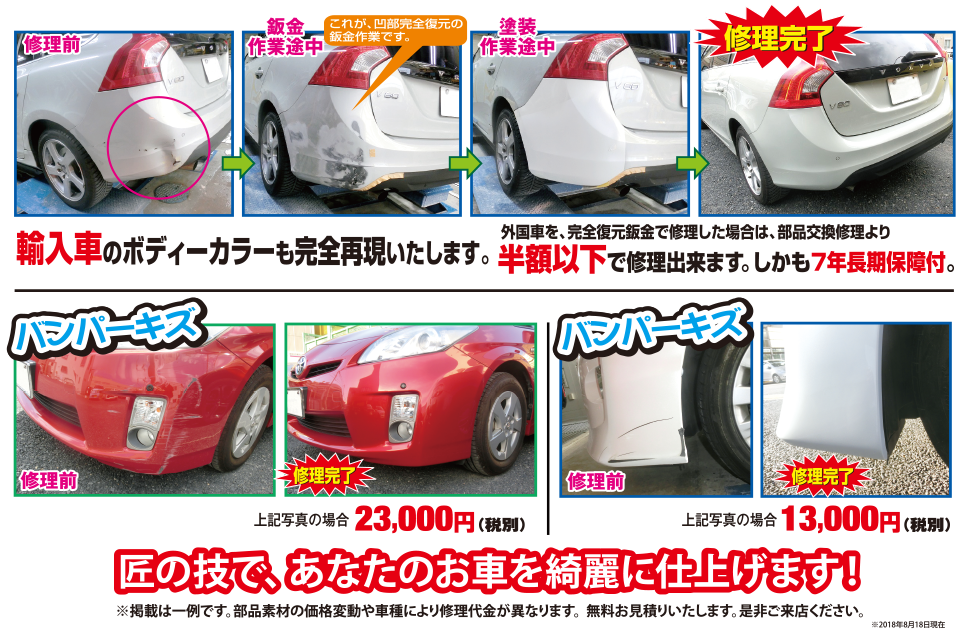 当社で修理させていただいたお客様のリストは、大切に保管させていただいております。施工させていだいた部分に色ボケ・変色・パテやせ・ガタつき等がおきました場合には、7年間は無償で、誠意をもって対処させていただきます。